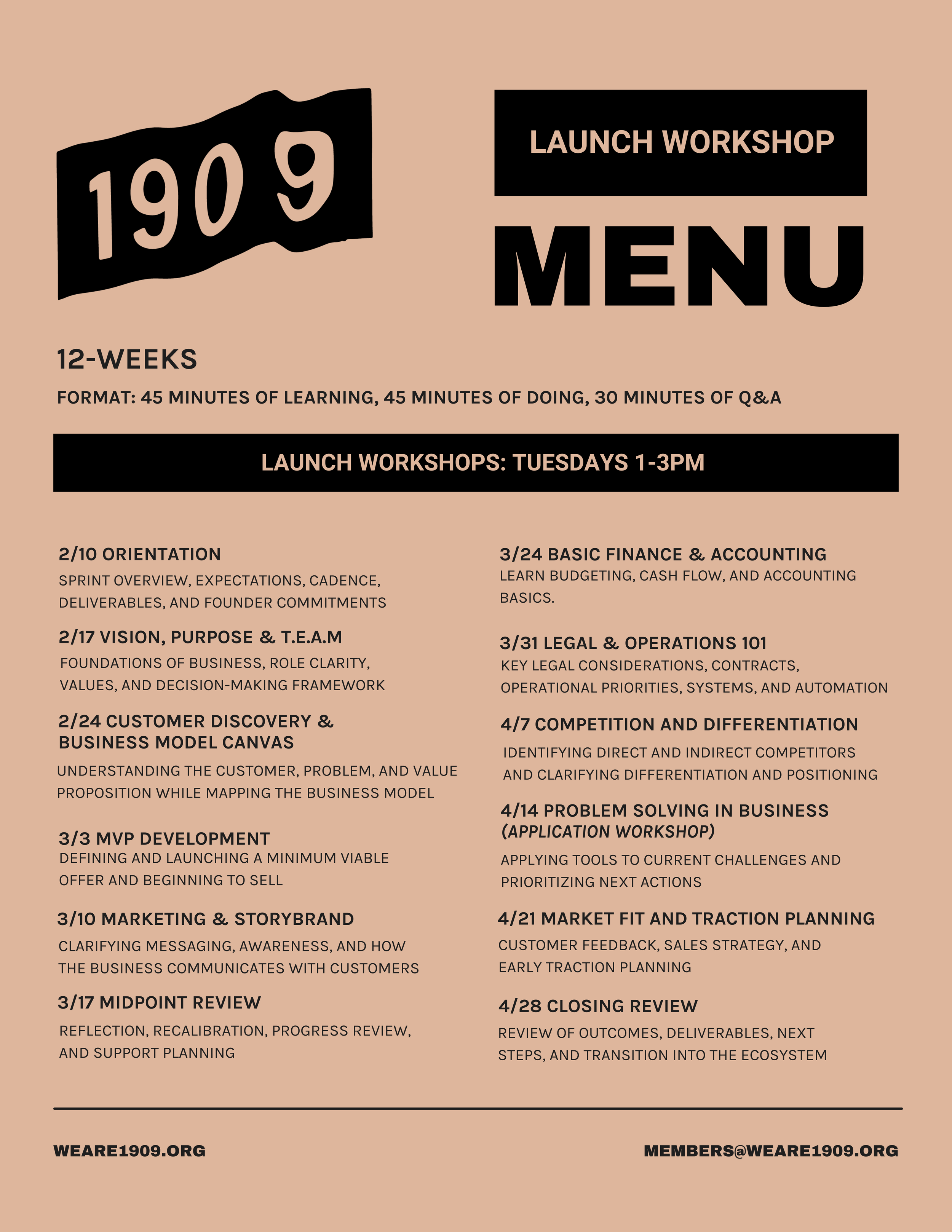 Our LAUNCH tier is designed for companies that have $0-$50K in revenue. With the goal to help founders validate their business, deeply understand their customer, and commit to selling something within the next 90 days while building strong foundations.